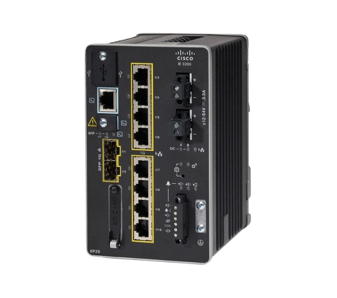 10 Port Cisco Catalyst IE3300 Rugged Managed Switch with eight Gigabit PoE and two Gigabit fibre SFP ports.