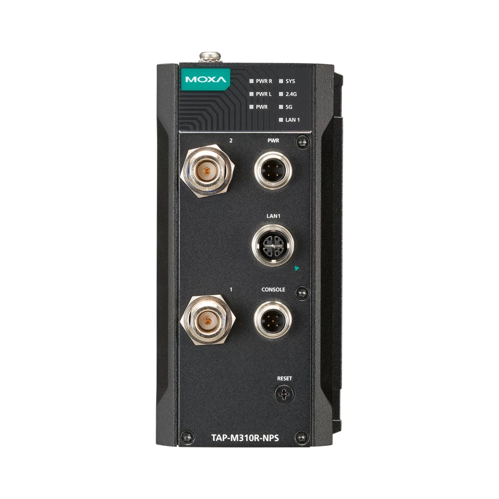 The TAP-M310R Series is a rugged Wi-Fi 6 train-to-ground platform designed for reliable rail communications such as CBTC backhaul and onboard CCTV. Built on IEEE 802.11a/b/g/n/ac/ax, it delivers selectable dual-band throughput up to 574 Mbps on 2.4 GHz or 1,201 Mbps on 5 GHz, with controller-based Turbo Roaming for handovers under 50 ms when paired with the WAC-M300 on three selected channels. An IP67 metal enclosure, anti-vibration M12 connectors and a -40 to 75°C operating range ensure dependable service in harsh, mobile environments. The family offers models for both onboard and wayside use, including AC or DC power modules and variants with integrated Ethernet switch modules to simplify wiring and support multiple Ethernet/Turbo Chains. Wireless resilience is enhanced with AeroLink Protection, while built-in 2.4 and 5 GHz band-pass filters and 2x2 antenna splitters help maintain clean, stable links in noisy trackside conditions. Designed for rail, the series meets the mandatory EN 50155 tests and addresses key industrial requirements across power input, surge protection, ESD and vibration. With options for 24 VDC, 110–220 VAC or 24–110 VDC (model dependent) and fibre connectivity with Turbo Chain support, the TAP-M310R Series streamlines deployment and keeps critical rail networks connected end-to-end.