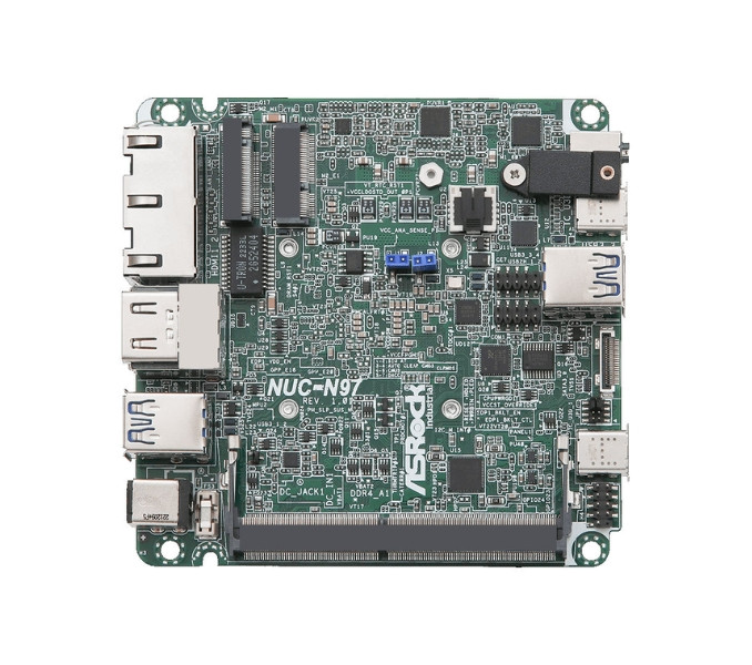 Intel Celeron N3350 1.8" Femto-ITX SBC with DDR4, up to 64GB eMMC, Micro HDMI, 1x GbE LAN, 2x USB 3.2, 2x USB 2.0 and 40-pin GPIO.