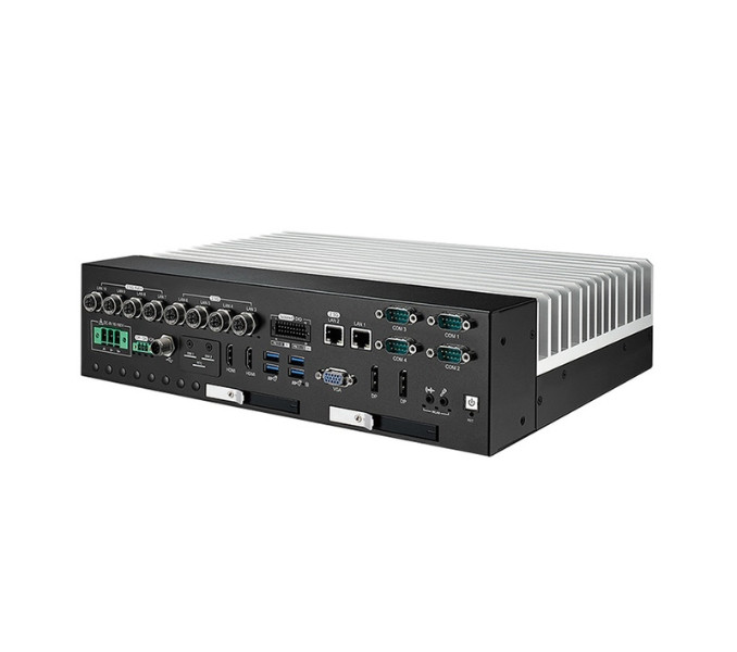 Intel 13th/12 Gen Core i9/i7/i5/i3 Fanless Rugged In-vehicle System with 8x Independent 2.5GigE LAN M12 X-coded ports, 16-bit isolated DIO.