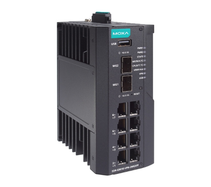 Moxa's industrial Ethernet solution includes integrated network security through cyber-hardened firmware and software. Additional security is added through the EDR series secure router, which combines firewall, VPN, and NAT functionality with Gigabit bandwidth to increase security protection on sensitive networks and defend mission critical assets against Internet attacks, unauthorised access, or intrusion.