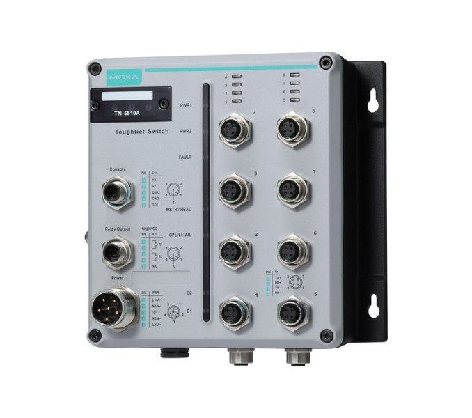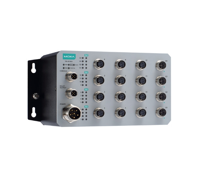 4x 10G Ports & 12x Gigabit Ports with Push-Pull M12 Connectors. Isolated Power with 24 to 110 VDC Power Supply Range. Complies with All EN 50155 Mandatory Test Items.